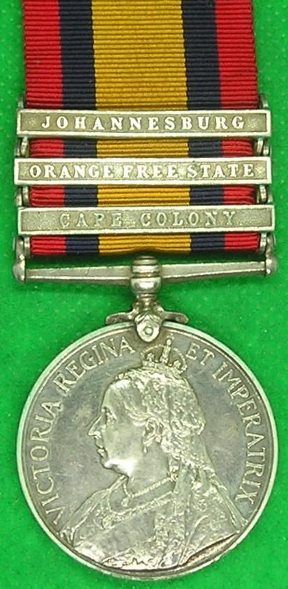 QSA 1899-1902 With clasps for Cape Colony, Orange Free State & Johannesburg To- 5546.PTE.J.SHIPLEY.N.STAFF.REGT GVF or better & complete with medal roll details