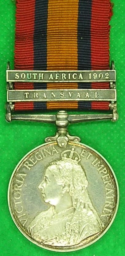 QSA 1899-1902 With clasps for Transvaal & South Africa 1902 To- 3729.PTE.J.DALE.N.STAFF.REGT NEF & Complete with medal roll details