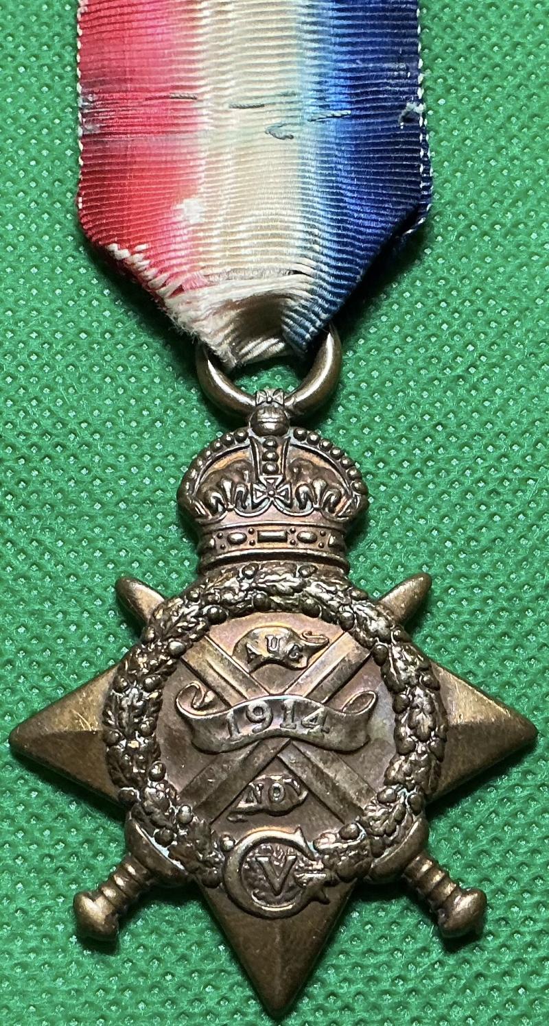 WW1 1914 Star To- 8672.L-CPL.T.SPARROW.1/SCO.RIF Thomas Sparrow first landed in France 15-8-1914 serving with the 1st battalion NEF & complete with MIC details