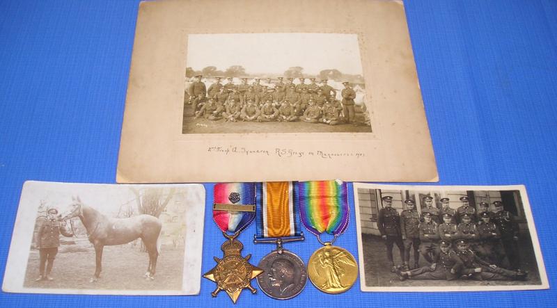 WW1 1914 MONS STAR & BAR TRIO, 2nd DRAGOONS / ROYAL SCOTS GREYS, WITH ORIGINAL PHOTOGRAPHS