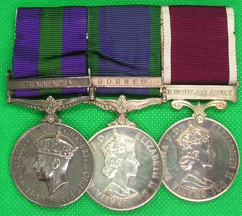 GVIR 2nd type GSM 1918-1962 With Malaya Clasp, GSM 1962 With Borneo clasp & EIIR 2nd type Regular Army LS&GC